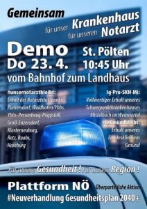 - Newsletter 29 3 26Überblick: Zur Lage Bewegung zur SICHERUNG DER GESUNDHEITSVERSORGUNG in NÖ gewinnt an Schwung Jedenfalls aus 10 Regionen werden am 23.4. Betroffene mit Bussen nach… Newsletter 29 3 26 weiterlesen